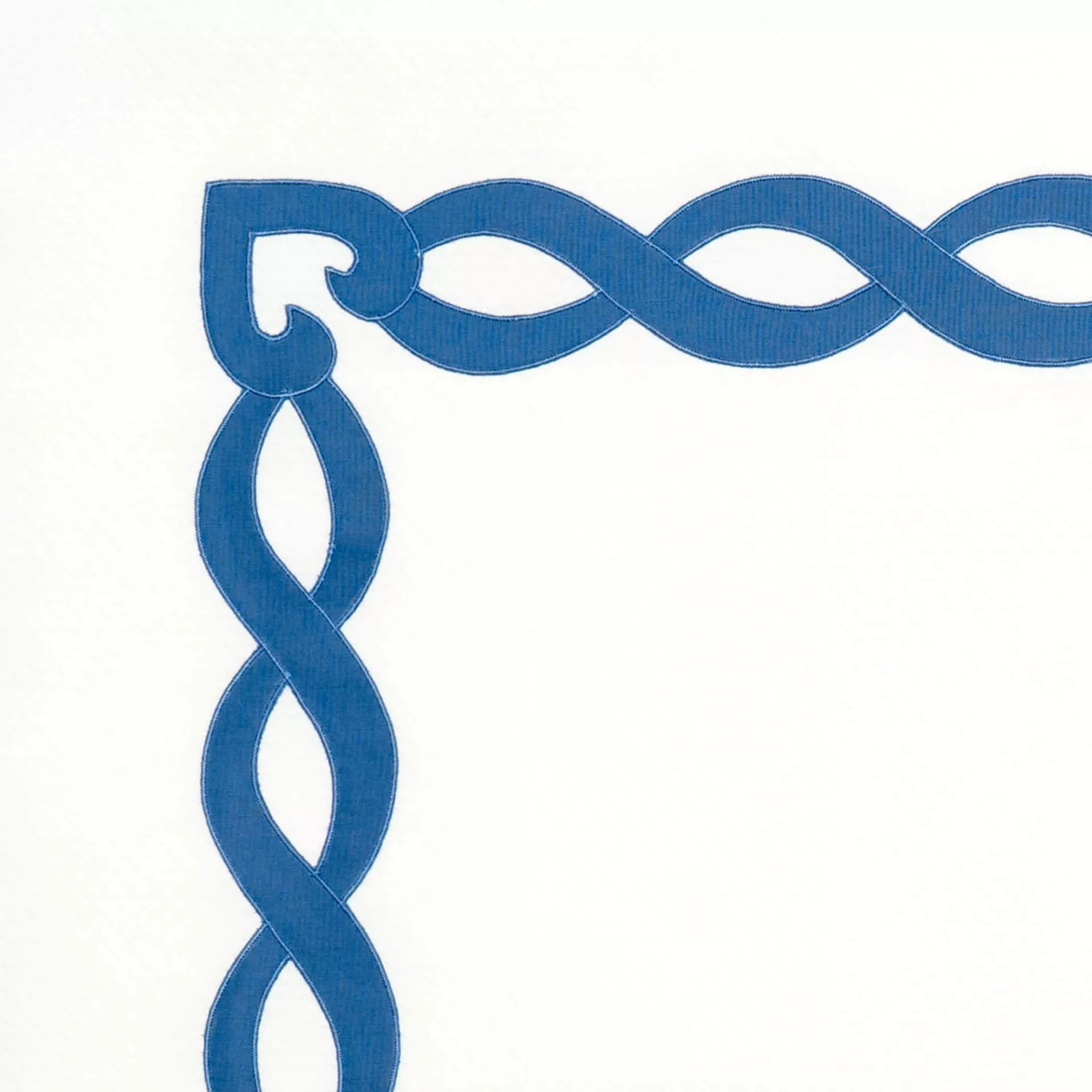 A nuanced take on the classic chain pattern done in the applique style combine with the Chain embroidered border for layers of different scale.
