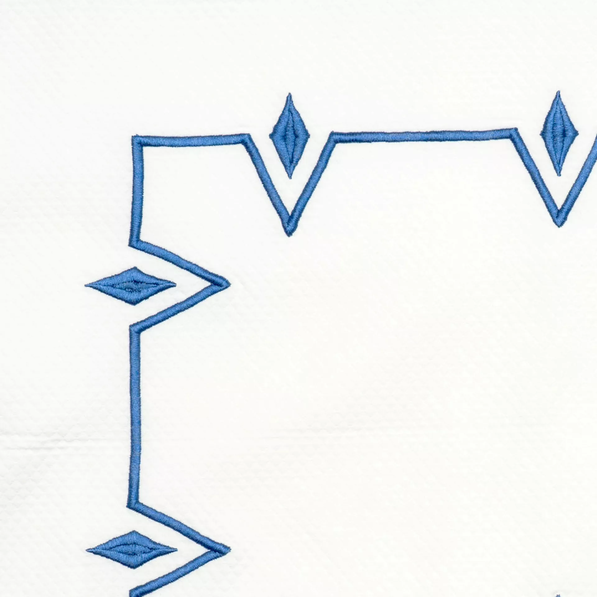 Be they embroidered or appliqued, our borders are sewn using hand-guided care and precision. Watch our talented artisans at work creating beautiful, lasting linens.