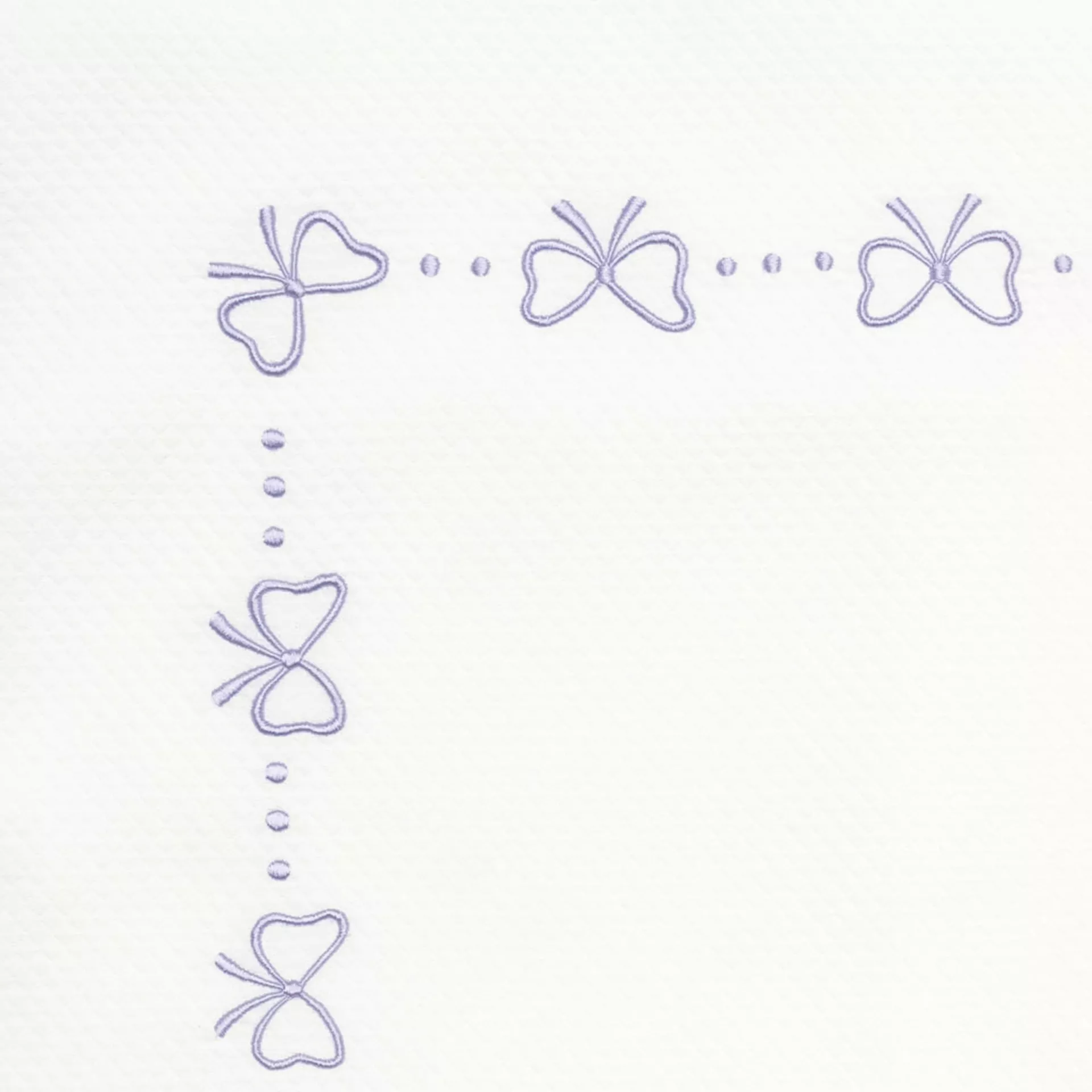 The Mathilde is a darling embroidered style with a repeating pattern of dots and bows.