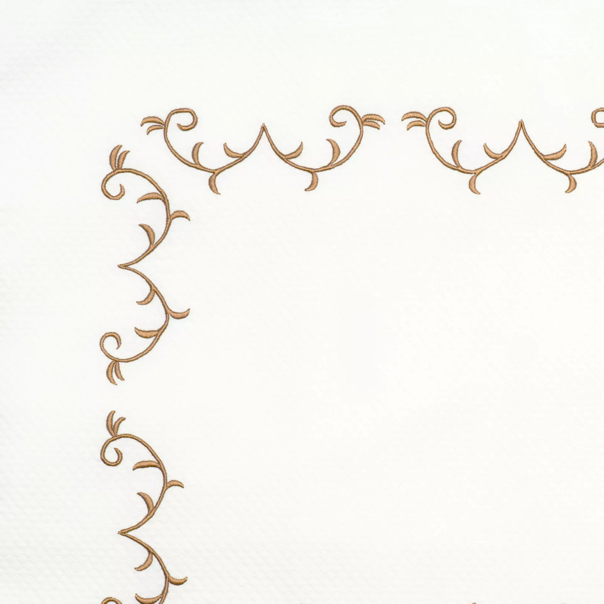 Be they embroidered or appliqued, our borders are sewn using hand-guided care and precision. Watch our talented artisans at work creating beautiful, lasting linens.