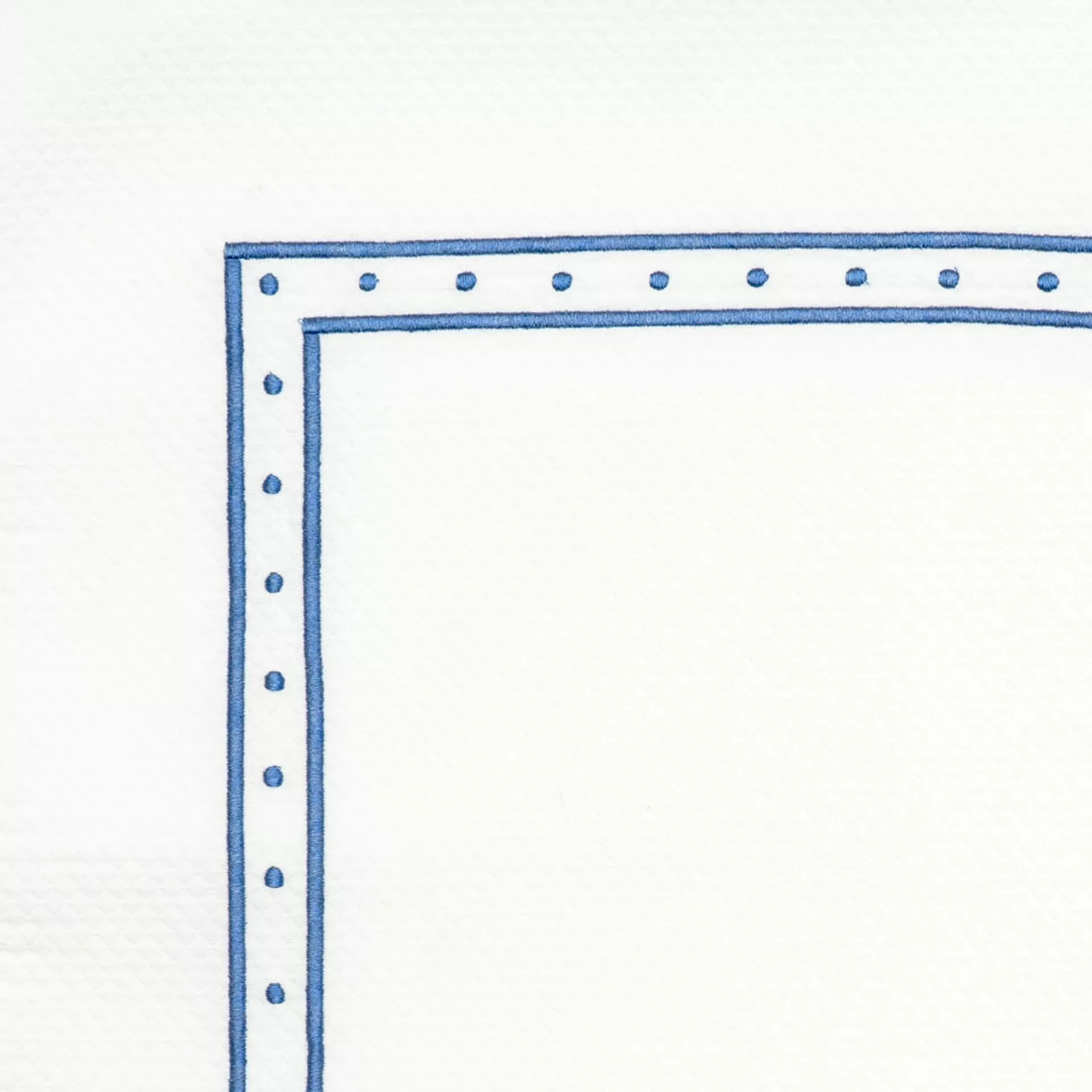 Our artisans pattern, transfer, and guide our embroidered stitching by hand for each border in our studio.