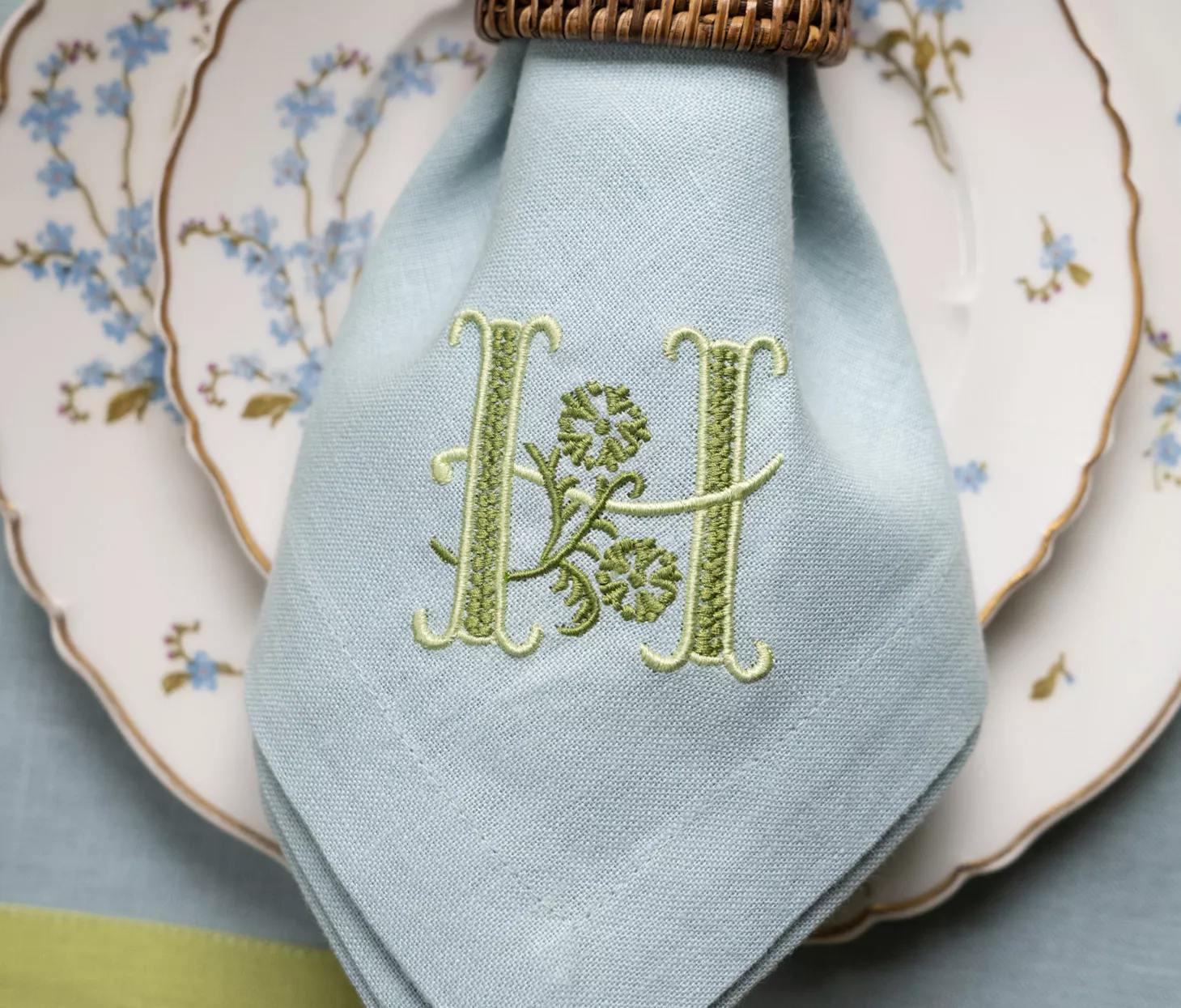 A single initial is perfect for representing either the First Name or Last Name. Ideal for guest spaces or more casual linens like cocktail napkins.