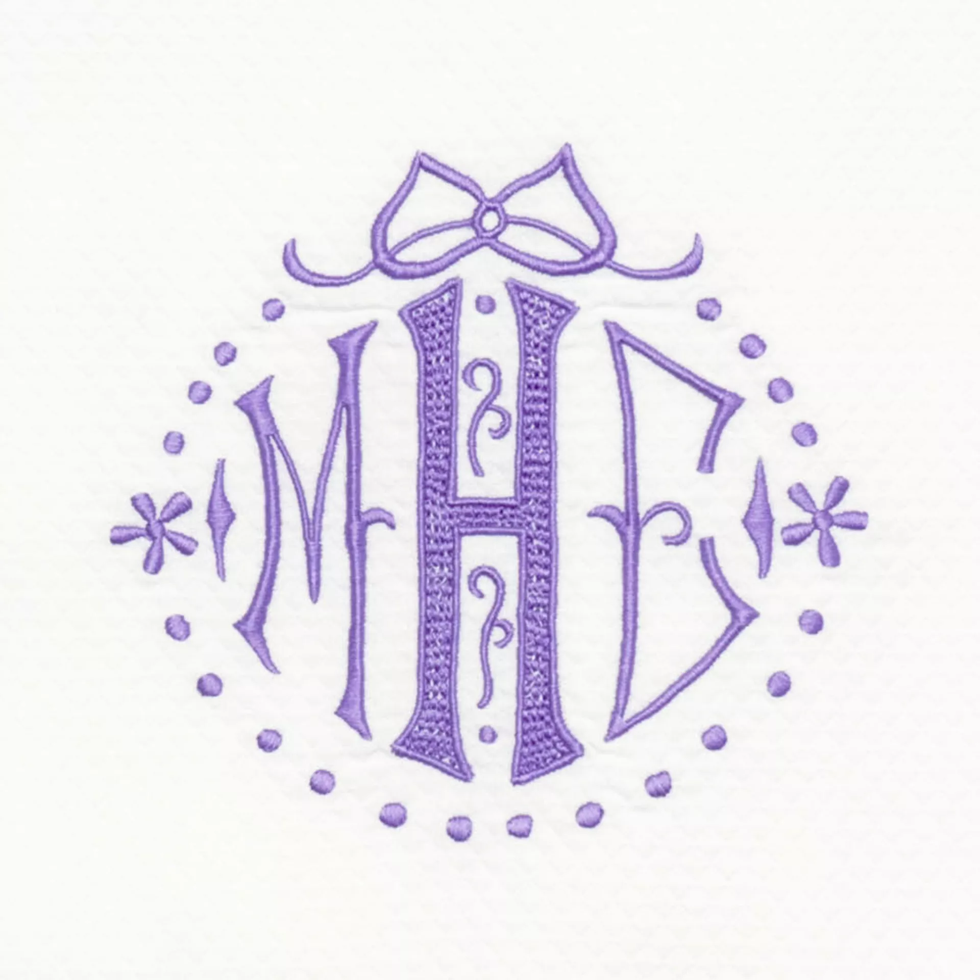 A design inspired by a client's original piece found in her grandmother's sewing kit, the Althea is sweet monogram with sweet vintage details all wrapped up with a bow.