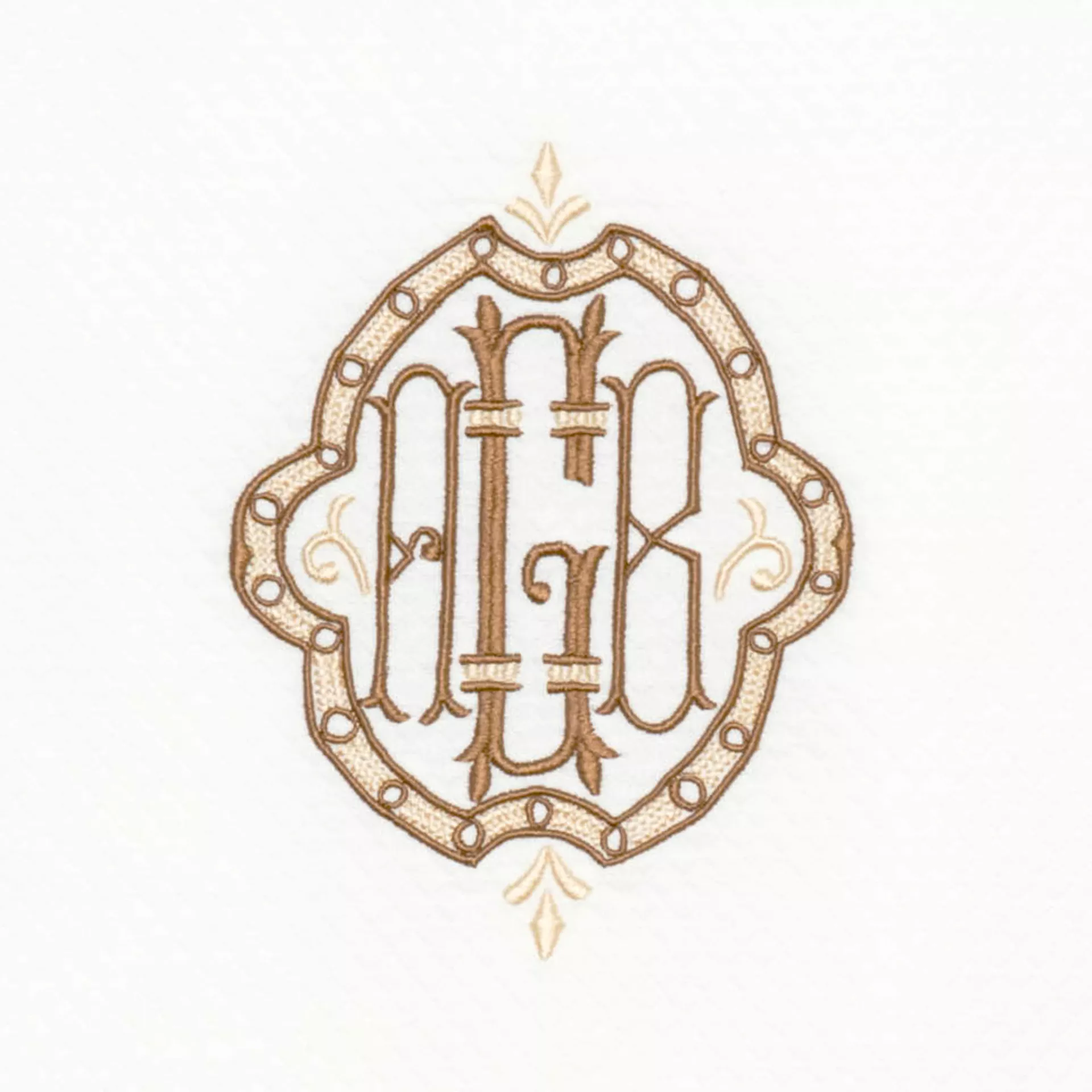 Quintessentially Leontine, the Louisa monogram features intricate layers of detailed embroidery found within the frame, accents, and flourishes that make this design incredibly unique.