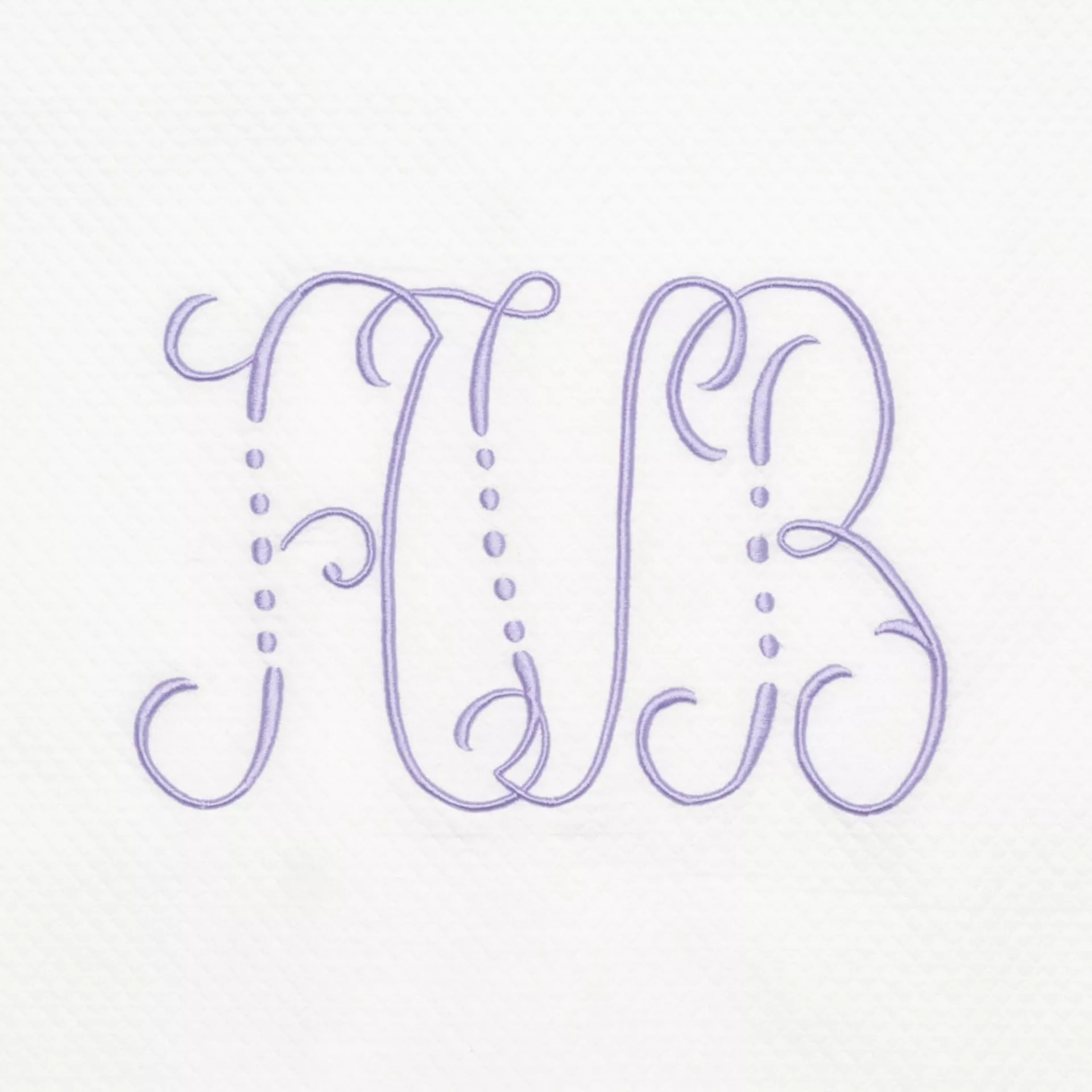 The interlocking letters are broken up with dotted embroidery, adding a fun nuance to this style that is reminiscent of the Julia monogram.