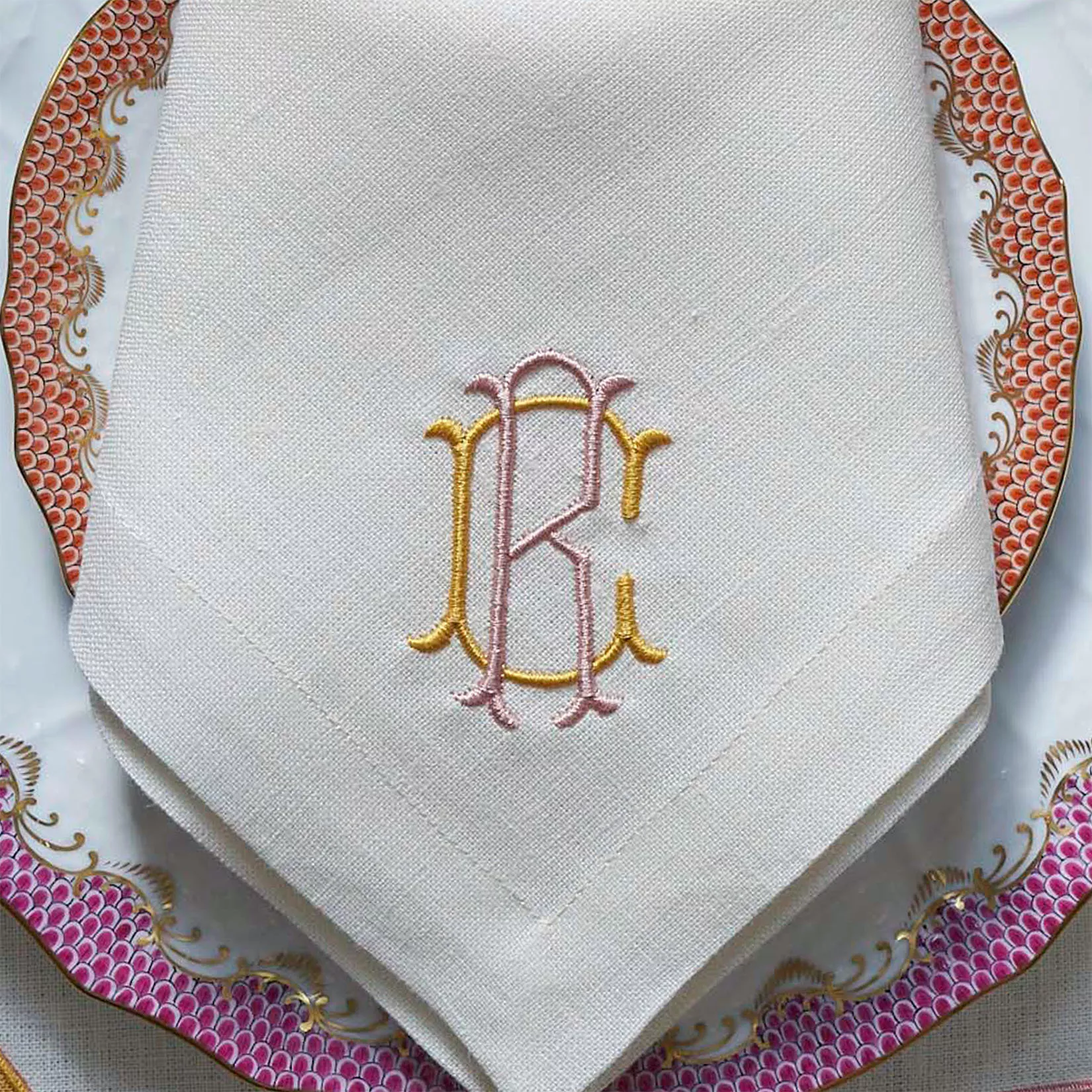 When pressing embroidery, we recommend pressing from the reverse side of the fabric so that the monogram remains raised. You can even layer or pad with a towel to help keep the monogram from compressing. Alternately, you may find that by removing your linens from the dryer while warm and still slightly damp, you are able to hand-press them, to avoid the iron altogether.