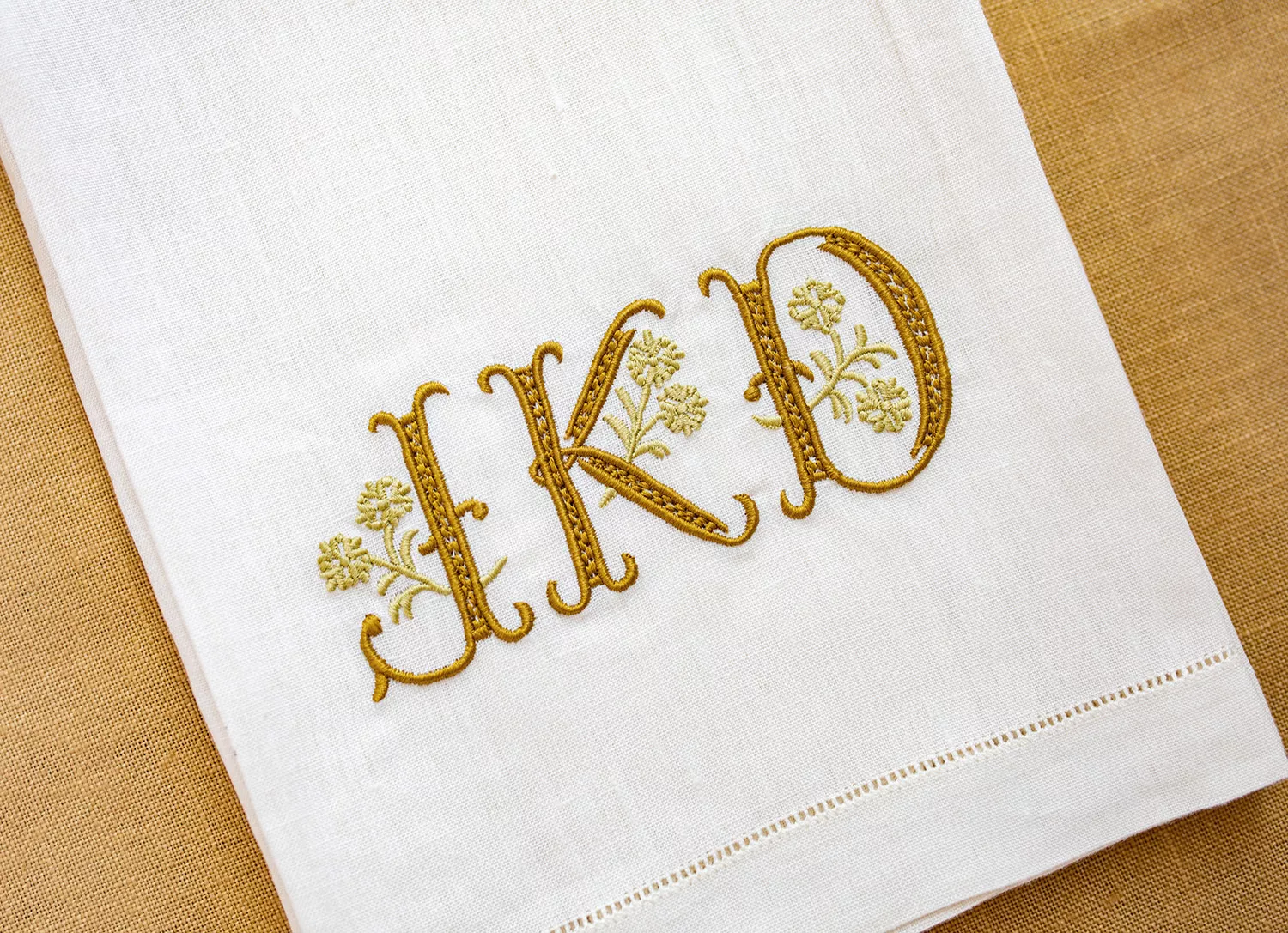 Hemstitch linen makes for a classic guest towel. The Anais embroidered monogram adds a touch of floral elegance
