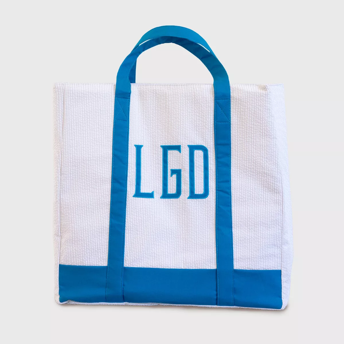 Cart your towels, books, and all your pool and beachside necessities in this large beach tote with waterproof interior.