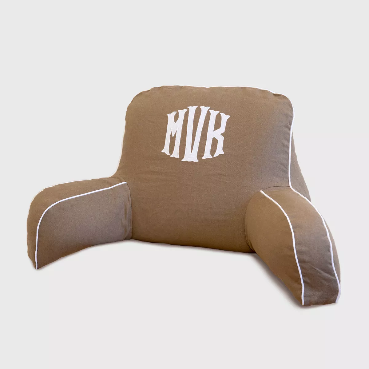 The Husband Pillow is a wedge pillow that features arms for the perfect level of support when unwinding. Your custom order includes both a removeable cover and the insert.