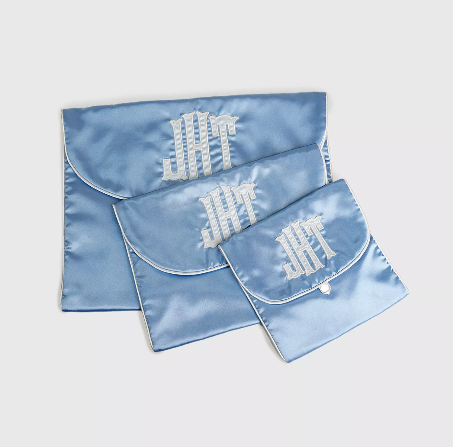 Store your sundries in style with these chic lingerie cases. Our un-quilted set can be created in either linen or satin, and our three sizes can be purchased as a set or individually.