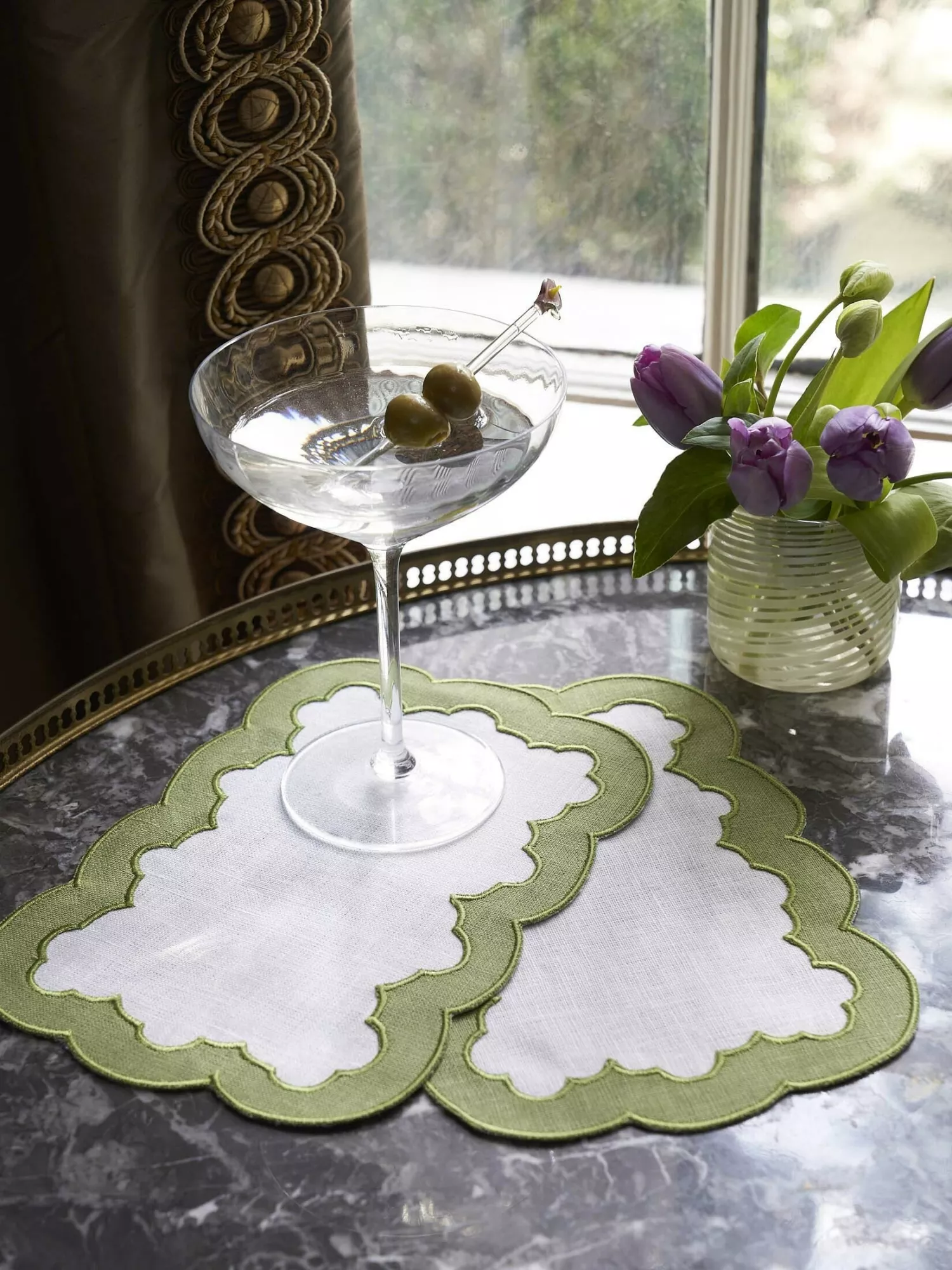 Showcase your drinks and cocktails with a napkin that features an applique edge treatment, such as the Rome table shape.