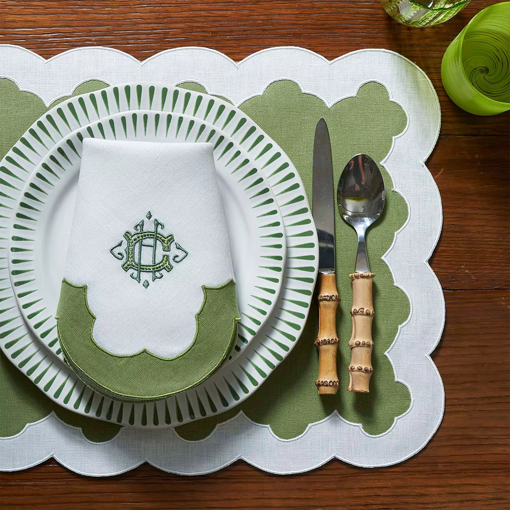 The Rome place mat in classic green and crisp white is the perfect match to so many china patterns, from botanicals to geometric. Take the look one step further with a corresponding dinner napkin in reverse colors.