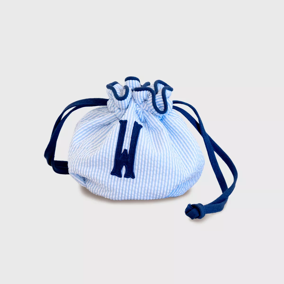 The Small Brussels Tote is a scaled down version of the larger version and well suited for weekend travel. The tote is a pouch-style with drawstrings in contrast trim to cinch the top closed. The Small Brussels Tote can accommodate a single letter applique monogram.