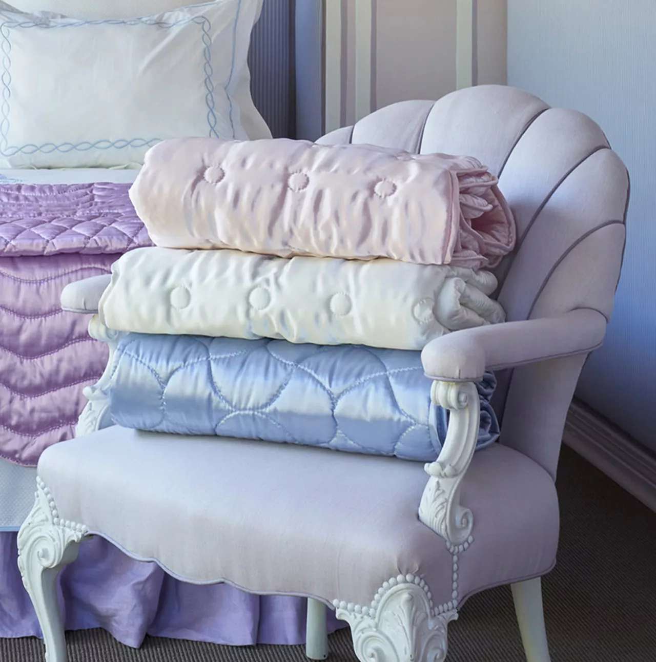 Leontine's heirloom quilts are sewn for everyday use and practicality. All satin quilts are machine washable and easy to care for, so don't be afraid to let your children enjoy your quilt, too! For full instructions on how to treat stains and care for your new piece, please review our Care Guide here.