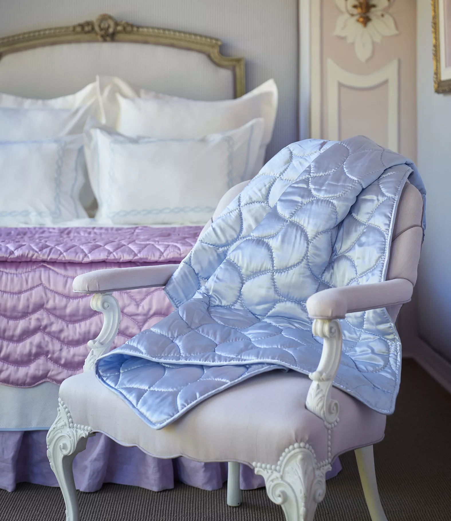 Leontine's heirloom quilts are sewn for everyday use and practicality. All satin quilts are machine washable and easy to care for, so don't be afraid to let your children enjoy your quilt, too! For full instructions on how to treat stains and care for your new piece, please review our Care Guide here.